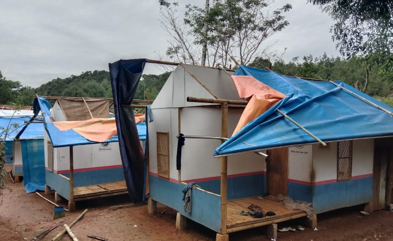 Angin Puting Beliung Hantam Huntara di kampung Talaga sinasari Pabuaran atap berterbangan