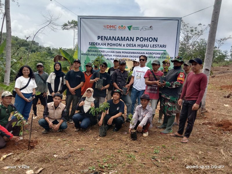 Sukabumi-jejakinformasi.id- Untuk merehabilitasi lahan dan pengembangan agroforestri berkelanjutan untuk pemulihan sistem wilayah daerah aliran sungai Cikaso kegiatan penanaman pohon durian,alpukat,pala cengkeh,.Kegiatan tersebut dilaksanakan oleh relawan dari yayasan DMC disaster management center dompet dhuafa Sabtu 13 Desember 2025